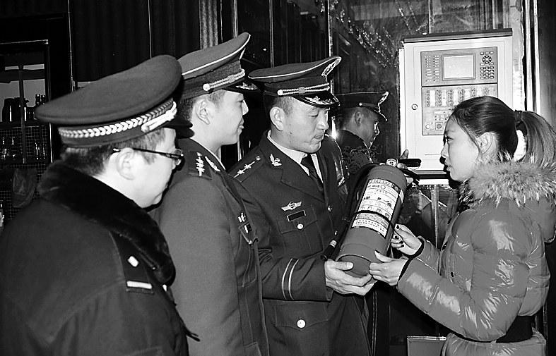 平安夜和圣诞节凌晨,正阳县公安局出动100余名公安民警、武警消防官兵对消防、治安隐患进行地毯式检查,对检查出的76起消防、治安隐患,责令业主就地整改。图为民警、武警消防官兵在对网吧内消防器材进行安全检查。记者陈磊特约记者朱剑锋通讯员张耀中郭海峰摄影报道