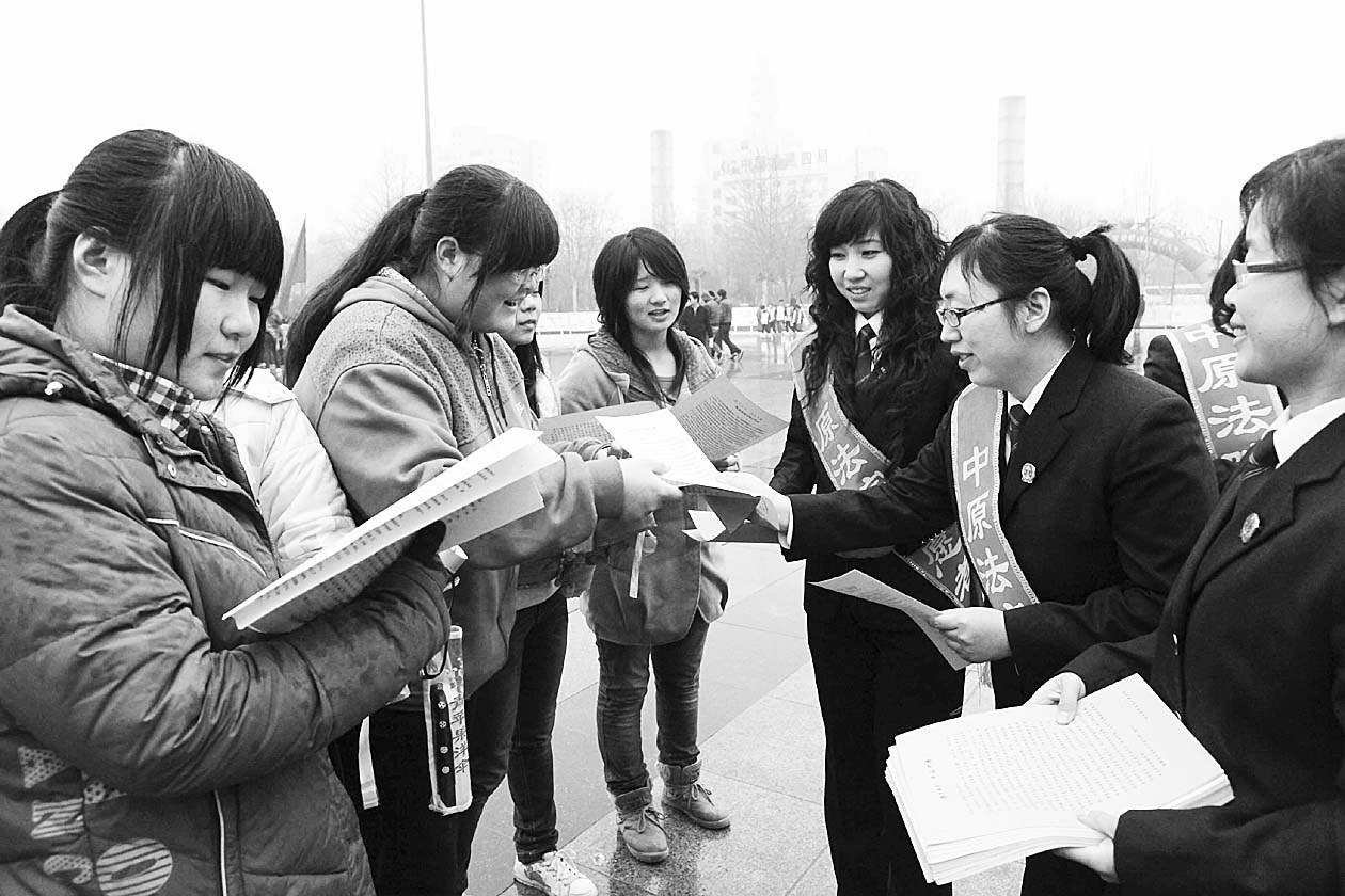近日,在省法院组织的“送法进校园”活动中,郑州市中原区法院的青年法官志愿者们走进辖区中小学校,为他们送上学生安全知识和自我保护有关知识,他们与同学们打成一片,一起交流自我保护技巧和方法。