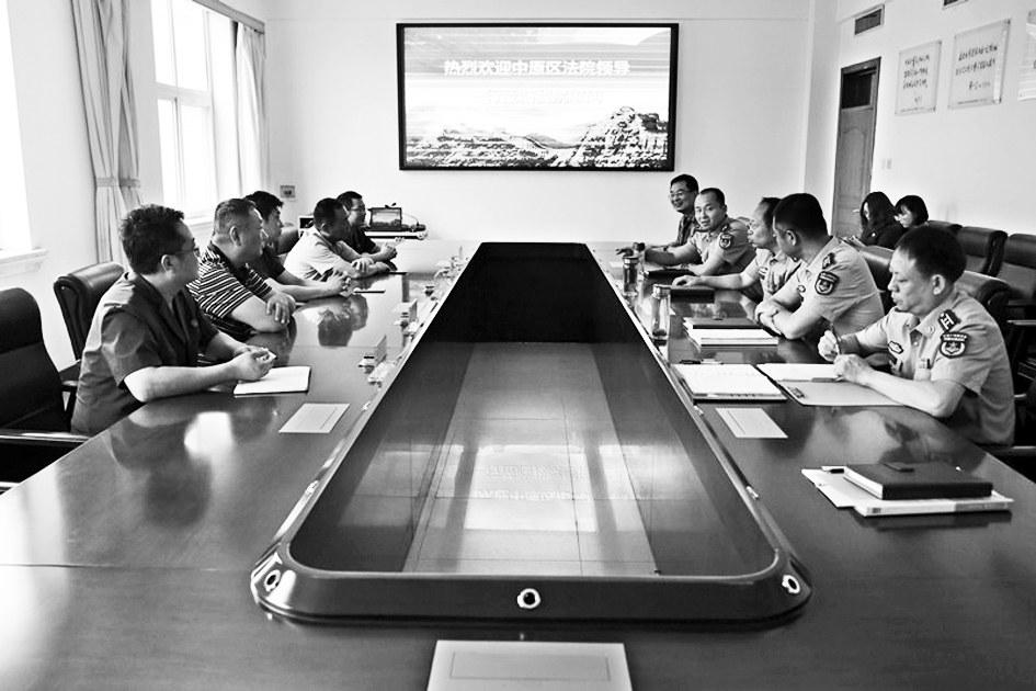 在八一建军节来临之前,郑州市中原区法院开展涉军走访慰问系列活动,切实做好双拥涉军维权工作。图为该院院长王栋带领干警走访解放军第153医院,双方围绕涉军维权案件的审理和执行等进行深入探讨。