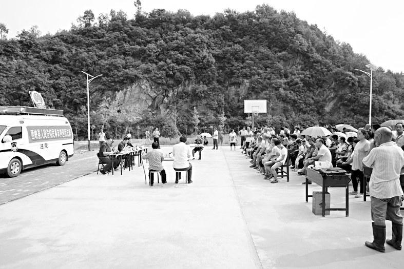 本报南阳讯(记者王海锋实习记者刘震通讯员杨亚冰范小婵/文图)8月2日,西峡县法院西坪法庭的法官走进西坪镇瓦房店村,巡回审理一起赡养纠纷案(如图)。 据了解,原告郑某侠年过七旬,被告柯某忠是她的大儿子。1996年的分家协议中约定,原告郑某侠由长子柯某忠赡养。2016年冬,原告因患病基本丧失生活自理能力,开始到被告家和被告一起生活。在此期间,原告和被告柯某忠夫妻多次因生活琐事发生矛盾,原告遂搬出去独住。因每月光吃药要花费800余元,原告无力承担,生活困难,多次要求被告支付赡养费无果。郑某侠老人到法院起诉,要求被告履行赡养义务。 西峡县法院西坪法庭受理该案后,多次下乡走访,实地了解案情,因考虑到赡养纠纷案件涉及老年人权益保护,在农村影响较大,为达到审理一案、教育一片的社会效果,西坪法庭的法官决定在当地进行巡回审判。 庭审过程中,审判长抓住双方的争议焦点明理释法。在法官和人民陪审员的耐心劝诫下,双方都同意接受调解。但由于被告经济困难,双方关于赡养费没能达成一致意见。合议庭商议后,依法作出判决,判决被告每个月支付原告赡养费800元,其他费用待实际发生后另案处理。