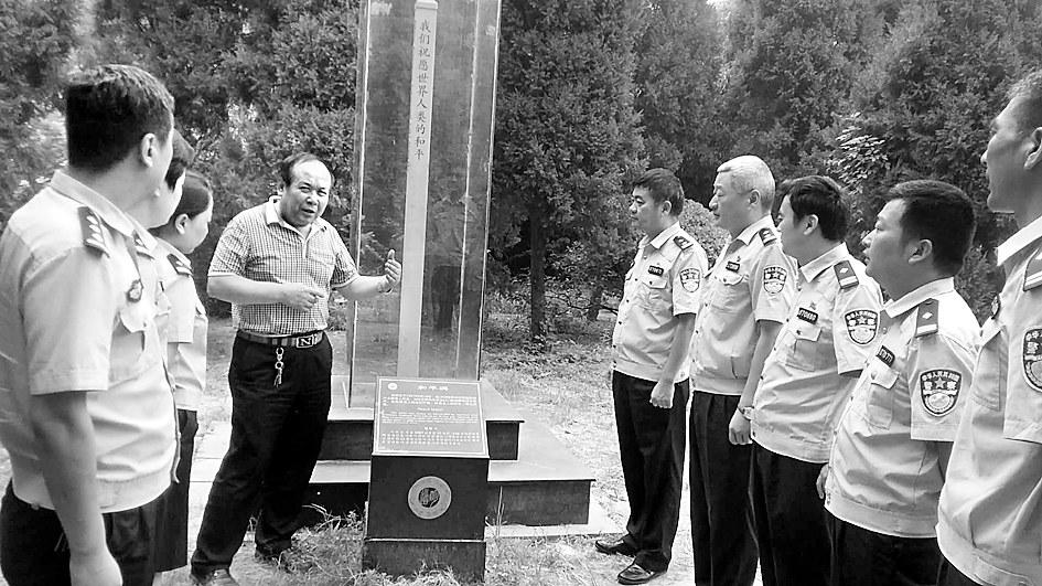 近日,鹿邑县公安局真源派出所党支部开展主题党日活动,邀请知名作家、老学专家杨东志到明道宫给全体党员上党课,进行爱国主义教育。