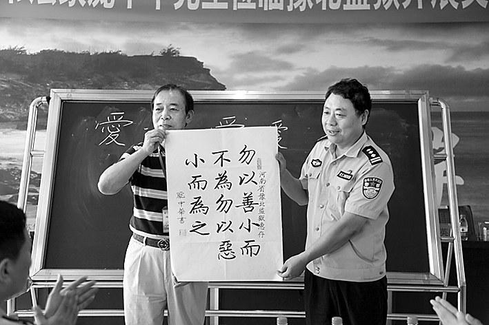 近日,著名书法家、教育家、诗人庞中华应邀到省豫北监狱为服刑人员上了一堂生动的书法课,开展文化帮教,还向监狱干警和服刑人员赠送了价值一万多元的硬笔书法字帖1200本。庞中华表示,将为全省监狱系统专门编写一套相关内容的硬笔书法教材。