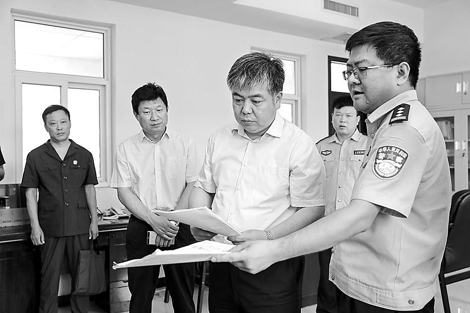 ▲近日,滑县县委副书记、县长陈忠前往县公安局、县扫黑除恶领导小组办公室调研扫黑除恶专项斗争工作,并指出,各相关部门要以更鲜明的政治立场、更敏锐的政治态度,真正把扫黑除恶各项工作抓细抓实抓好,彻底消除群众意见最大,看得见、摸得着的矛盾和问题。滑县县委常委、县委政法委书记、县扫黑除恶专项斗争领导小组常务副组长李卫锋陪同调研。河南法制报记者朱广亚通讯员丁浩摄影报道