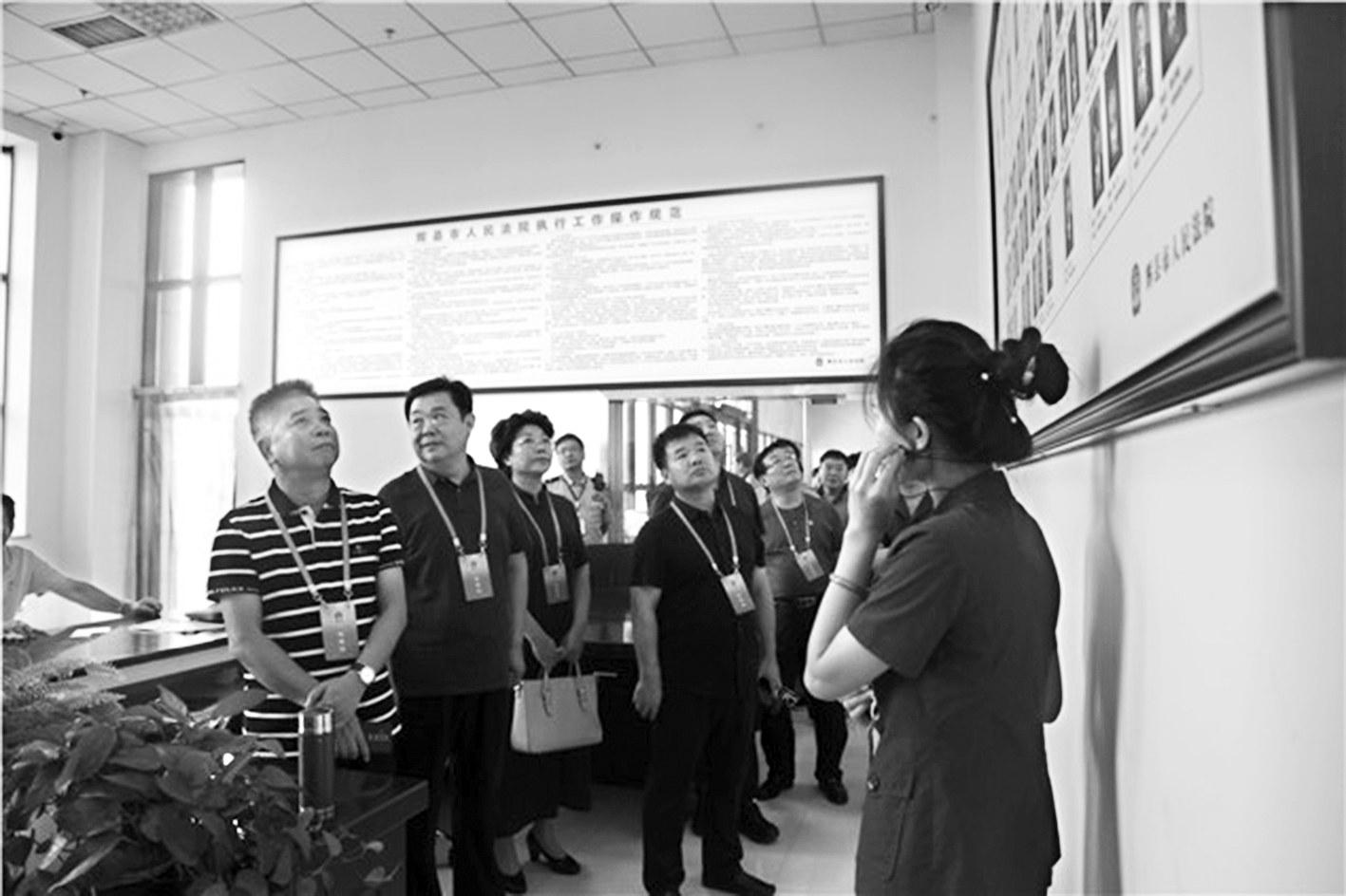 本报新乡讯(河南法制报记者穆黎明通讯员王和庆/文图)8月15日上午,新乡市人大常委会委员、市人大内务司法委员会主任委员、市人大内务司法工作委员会主任田忠东一行到辉县市法院调研执行工作(如图)。新乡市中级法院党组书记、院长袁荷刚,副院长张明华,辉县市人大常委会主任张星吉等陪同调研。 座谈会上,辉县市法院党组书记、院长肖飞向调研组作了关于基本解决执行难问题的报告,就该院执行工作取得的成效、存在的问题进行了专题汇报。今年1月至7月,辉县市法院共收执行案件3427件,结案2849件,结案率83.13%,在全省基层法院执行质效考核中位列第16名,在新乡市法院系统位列第3名。该院已初步形成了“党委领导、人大监督、政府支持、政法委协调、法院主办、各部门配合、社会各界参与”的执行工作大格局。 新乡市人大常委会委员高弘、苌道卿肯定了辉县市法院执行工作取得的成绩,对该院今后的执行工作提出了要求和希望。田忠东就执行不能案件、打击拒执等工作情况进行了调研,并和与会人员进行了座谈和交流。 袁荷刚就涉党政机关案件、长期未结案件、执行规范化建设等向辉县市法院布置了结案目标和任务。肖飞说,将带领全体干警勇往直前,实现基本解决执行难的工作目标。 |