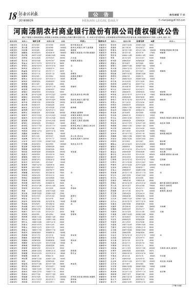 河南汤阴农村商业银行股份有限公司债权催收公告