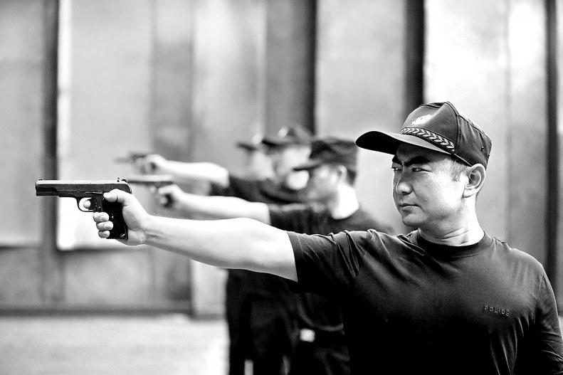 连日来,郑州市石佛强制隔离戒毒所组织民警开展集中练兵活动。图为该所民警在河南司法警官职业学院室内靶场打靶。