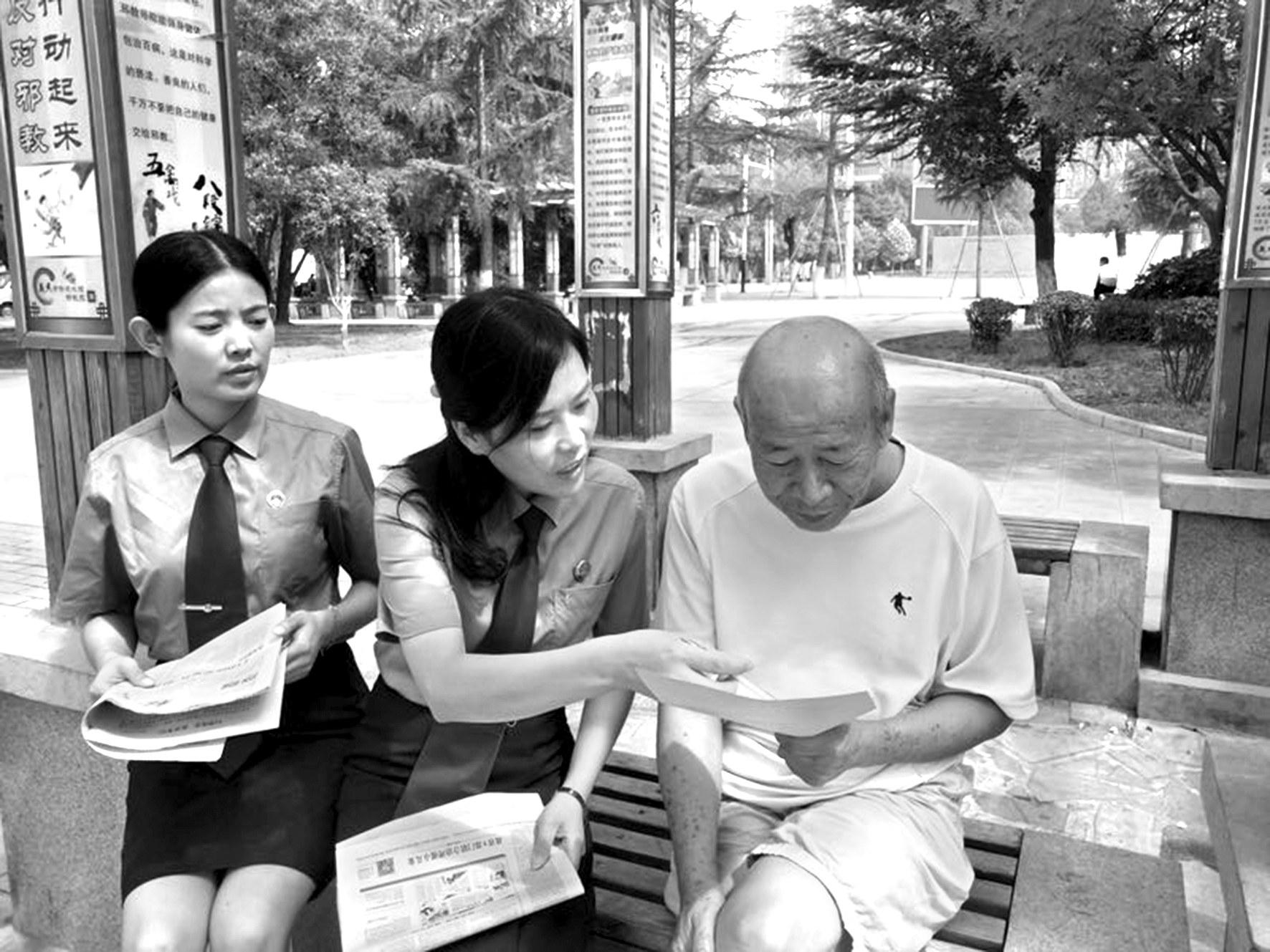 为普及公益诉讼相关法律知识,近日,义马市检察院组织检察官来到该市中心公园,向群众介绍检察机关办理公益诉讼查办案件的范围、工作流程等相关规定。图为检察官认真倾听群众提出的问题,耐心地为他们答疑解惑。 杜恩 董静摄影报道