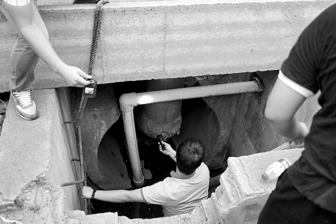 ▲近日,汝州市水污染防治攻坚办组织该市产业集聚区管委会、交通局、环保局、污水处理厂等单位,对工业大道地下管网进行现场摸排行动,防治企业偷偷排污。