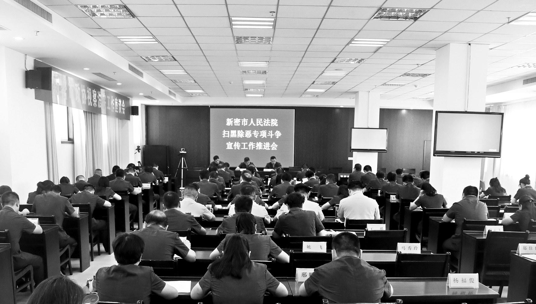 为扎实推进扫黑除恶专项斗争,进一步加大扫黑除恶专项斗争的宣传力度,营造全员参与的浓厚氛围,9月3日,新密市法院组织召开扫黑除恶专项斗争宣传工作推进会。该院班子成员、各部门中层正副职、员额法官参加了此次会议。