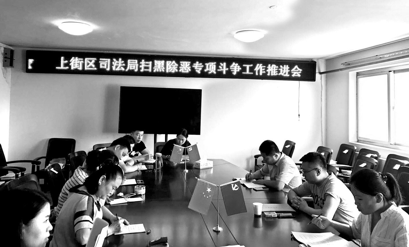 为持续深入推进扫黑除恶专项斗争,9月6日,郑州市上街区司法局召开扫黑除恶专项斗争工作推进会,对扫黑除恶专项斗争工作进行再动员、再部署。