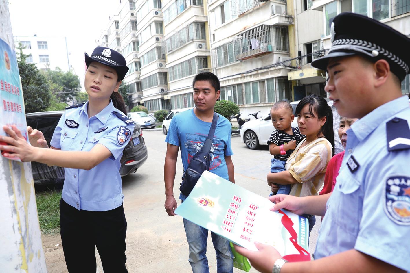 近日,郑州市公安局全警动员,结合实际继续利用不同形式大力开展扫黑除恶宣传活动。图为东风路分局治安管理服务大队姜砦警区的社区民警在辖区开展扫黑除恶宣传活动。河南法制报记者宁晓波通讯员刘书亭摄影报道