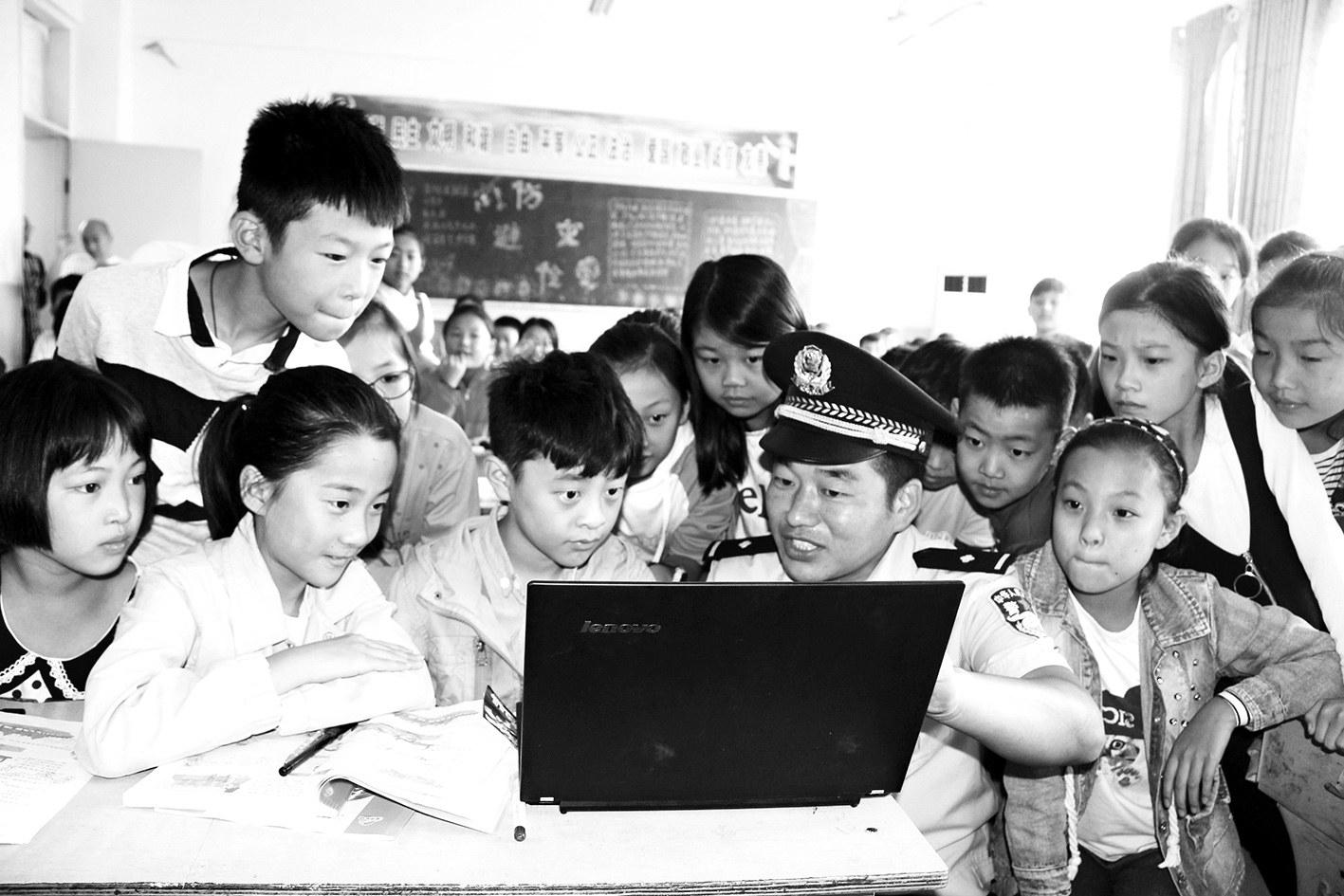 警察叔叔进教室讲解安全用网
