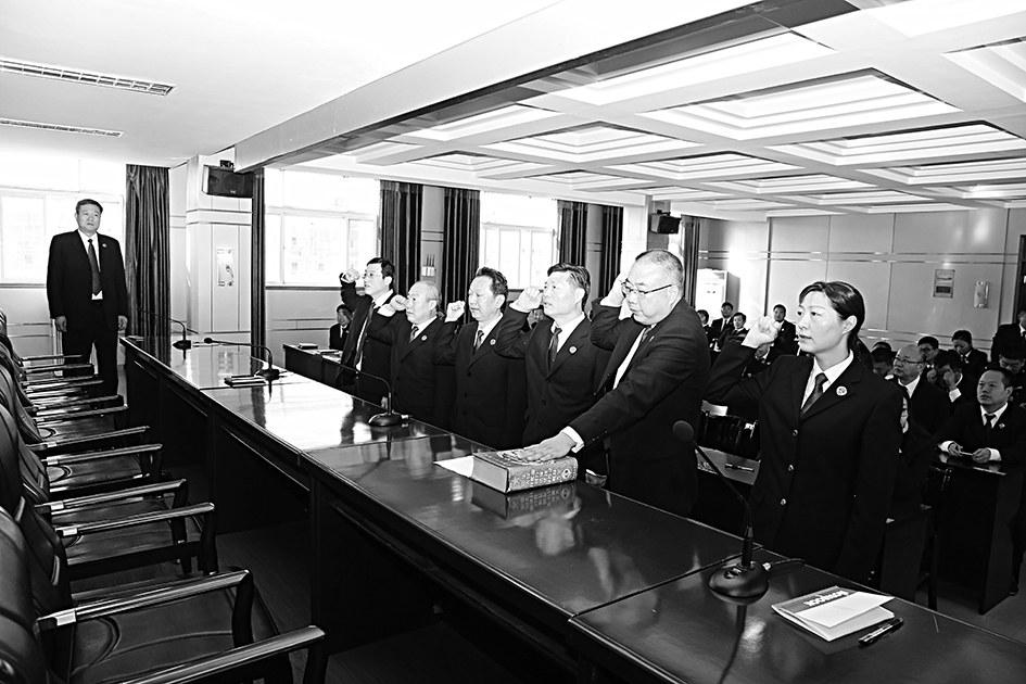 10月29日上午,淮阳县检察院6名新任检委会委员身着制服,在院党组副书记张振灵的监誓下,向宪法庄严宣誓就职。