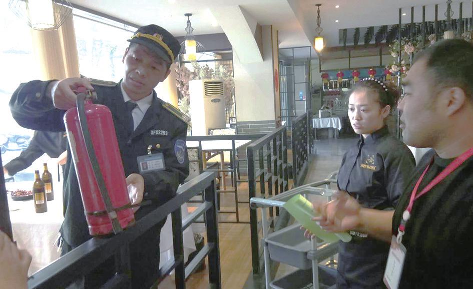 10月30日,郑州市中原区建设路街道办事处工作人员协同辖区巡防队员进行防火宣传和消防安全检查。“以前附近街上电动车乱停,还有人私拉电线充电。但现在经过一系列整治,变得干净整齐了。”商户代表张女士赞不绝口。图为工作人员在商户店内检查消防器材。