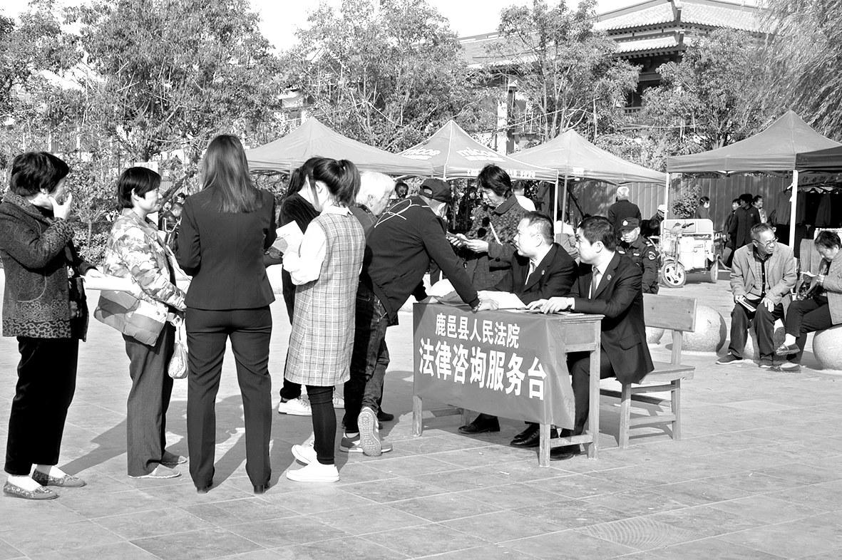 日前,鹿邑县法院干警在太清宫广场通过发放宣传彩页、提供法律咨询的方式,向过往群众宣传“扫黑除恶”方面相关法律和政策规定,并公布了举报方式,动员广大群众积极参与,踊跃举报,协助政法机关铲除欺压群众、横行霸道的黑恶势力,共创安全稳定的社会环境。