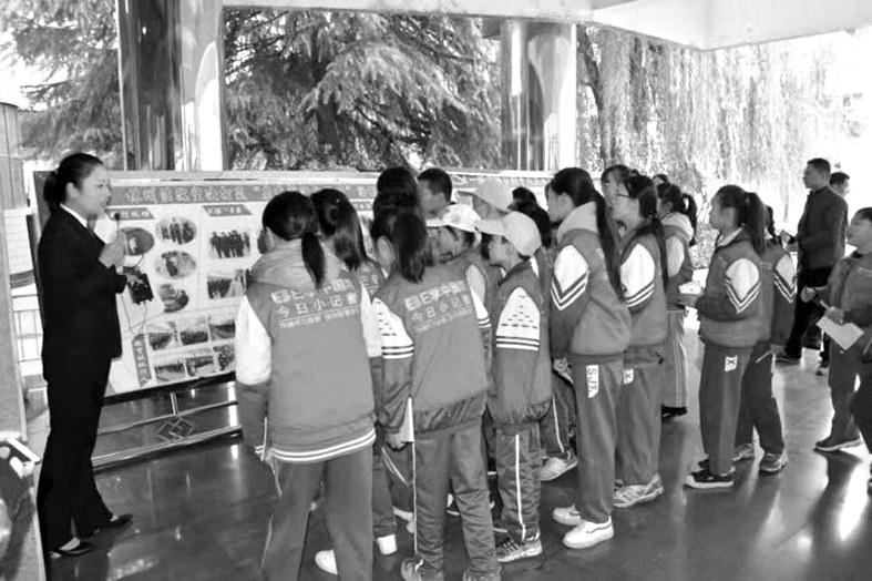 |  | | | “小记者”们一边观看展板一边听讲解 |