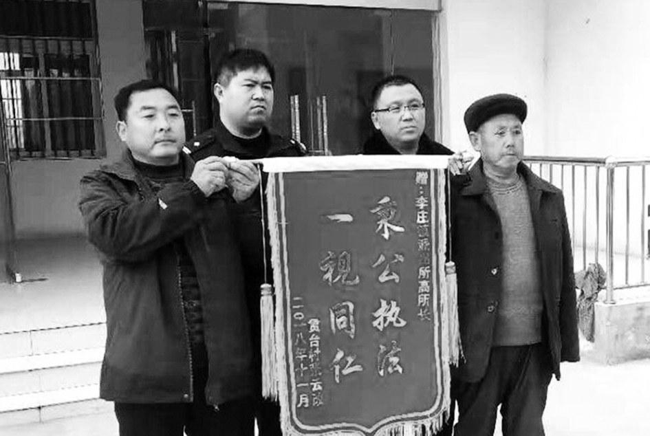 近日,封丘县李庄镇群众张某等人将一面印有“秉公执法一视同仁”字样的锦旗赠予封丘县公安局李庄派出所,表达对该所民警严格公正执法的感谢。张进昌摄影报道