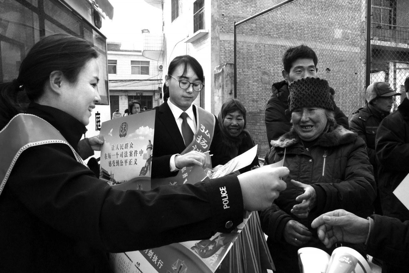 新年到来之际,卢氏县法院组织青年干警志愿者开展了下乡送法治年画赶大集活动。