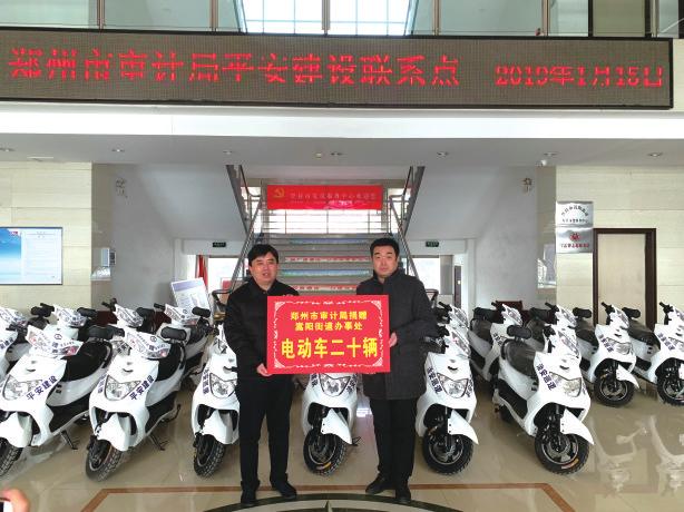 近日,郑州市审计局党组成员、副局长桑富强一行到登封市嵩阳街道办事处开展平安建设“一对一”帮扶捐赠活动,并举行了捐赠仪式,为该办事处送20辆电动车,用于辖区的平安建设,全面落实平安建设联系点工作。
