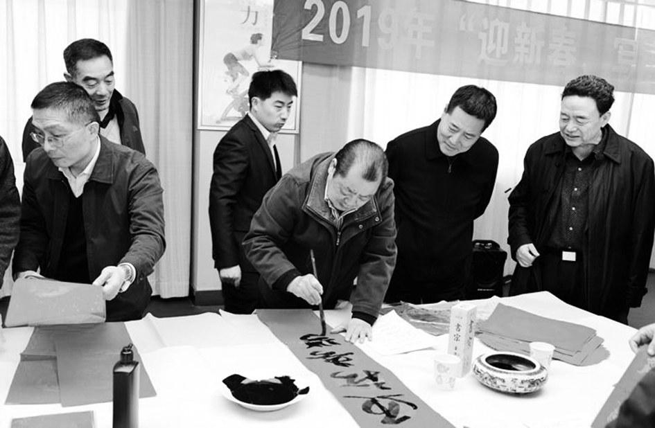 本报讯(河南法制报记者王园园/文图)1月21日,省人大常委会机关文明办、机关党委、省人大书画摄影研究院联合举办“2019年迎新春、写春联、笔墨浓情送祝福”活动。省人大常委会秘书长、机关党组书记丁巍致辞,省人大常委会副秘书长、办公厅主任杨汝北主持活动。 省十一届人大常委会副主任、省人大书画摄影研究院院长刘新民,省人大书画摄影研究院副院长夏林、张国臣、梁铁虎等14位书法家参加活动(如图)。 丁巍表示,本次活动旨在学习贯彻习近平新时代中国特色社会主义思想,弘扬中华优秀传统文化,培育和践行社会主义核心价值观,丰富机关精神文化生活,让广大干部职工切实感受到中国传统文化气息。 活动现场氛围浓厚,书法家们挥毫泼墨,亲情奉献,分别以行书、草书、隶书、篆书等书法字体书写春联,一个个翰墨飘香的“福”字跃然纸上,为即将来临的春节增添了浓浓的喜庆氛围。 本次活动,书法家们为机关广大干部职工书写了700余副春联。