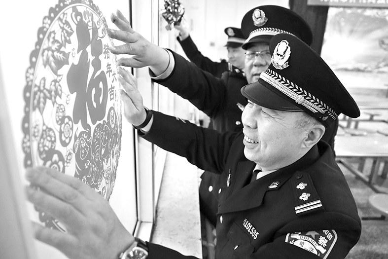 1月30日,在郑州市齐礼阎强制隔离戒毒所,该所生活卫生科民警正在贴窗花。连日来,该所购买了灯笼、春联、窗花等节日装饰品,将所内装扮得年味十足,充满了喜庆、祥和的家的温馨。