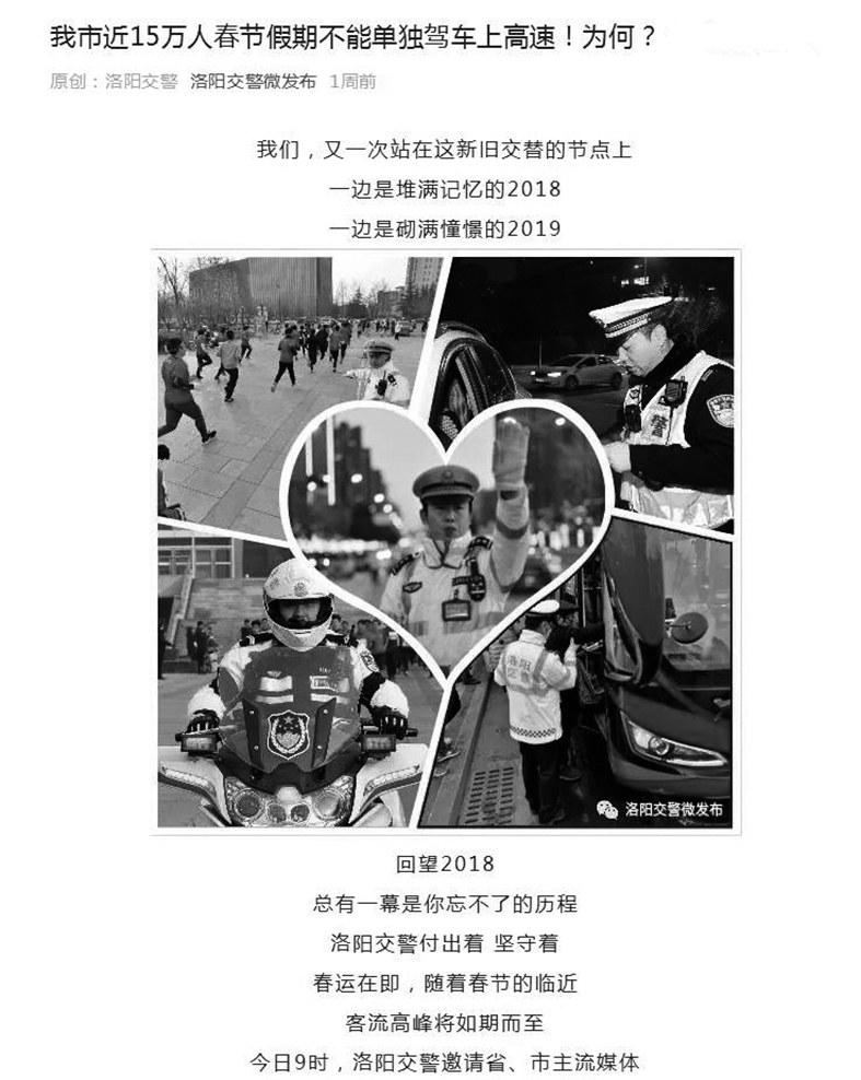 2019年春运自1月21日开始,到2019年3月1日结束,共计40天。为确保春运期间道路交通安全,近期,河南各地公安交管部门表示,将以春运交通安全为首要任务,提早准备、精心谋划、周密部署,全力护航春运。河南政法新媒体也纷纷发布相关文章,温暖陪伴大家的出行。 发布提示错峰出行 在春运刚启动时,河南各地公安交管部门就相继发布了2019年春运两公布一提示,为大家回家过年指路保通。 例如,@郑州交警公众服务发布的《春节将至,郑州交警发布春运交通安全提示,请注意查收》、@漯河交警发布的《2019春节假期河南高速出行攻略出炉啦!免费、优惠、路况都有!》,都详细介绍了春运期间各地的天气预测、路网运行预测、易发生拥堵的路段及收费站、存在道路施工的路段及河南省高速公路最新优惠政策等信息,并建议大家提前做好出行攻略,注意错时错峰,避开容易拥堵路段,注意行车安全。 实名曝光确保安全 春运出行方式多种多样,如果离家不太远又有车,那么自驾回家会是不少人的首选。但是,对有些人来说,因为以下一些原因,他们没有自驾的资格了。 近日,@洛阳交警微发布推送多篇文章,如《盘他!实名曝光一批酒驾暂扣、吊销机动车驾驶证驾驶人》一文,曝光了一批以身试法的酒驾人员,这也意味着春运路上他们将与自驾无缘。文章《我市近15万人春节假期不能单独驾车上高速!为何?》,向大家解释,根据相关法律规定,机动车驾驶人在实习期内驾驶机动车上高速公路行驶,需由相应或者更高准驾车型驾驶证三年以上的驾驶人陪同。而《取消资格!他们与今年春运无缘!》一文,则向社会公布了被取消春运营运资格的车辆及驾驶人名单,诚邀大家参与春运交通安全监督,对发现的交通违法行为可以及时举报,同时提醒大家在乘车出行时,不要乘坐超员车辆、非法营运车辆、带“病”车辆、无牌无证车辆,以确保自身及家人交通安全。 关注细节避免被罚 春节期间,各地如何限行也是大家关注的重点。 为此,@平安中原、@郑州交巡警二大队和@驻马店市中级人民法院相继发布文章,如《春节前后郑州限行吗?答案来了!》《被罚影响心情郑州春节期间限行日历,提前看看》《限行有变!驻马店春节期间如何限行……权威消息来了!附春节限行日历》,详细介绍了节日期间郑州及驻马店的限行方式,方便大家出行。 正如@郑州交巡警二大队所说,被罚影响心情。那么,如何才能避免被罚呢?那就要多多注意细节啦! @郑州交巡警二大队发布的《开车路过斑马线时请注意,郑州这仨路口抓拍最多!》,提醒大家在路过斑马线时一定要注意礼让。@洛阳交警微发布发布的《免费!市区新增一批临时停车泊位!扩散周知!》,分享了一批免费的停车位的同时,还提醒大家出门要按位泊车。而@焦作交警微发布发布的《明日起,这12处高速区间测速设备将正式“上岗”》,则介绍了自1月31日起,焦作12处高速公路区间测速设备将正式“上岗”,提醒广大驾驶员不要超速行驶。 了解套路防止被骗 此外,岁末年初,各类诈骗案件频发,诈骗分子为了“冲业绩”,不断更新技术手段,翻新各类套路,严重危害人民群众的财产安全。 对此,@河南省反虚假信息诈骗中心发布的《岁末年初,这份防骗提醒一定要看!》,向大家介绍了网络购物诈骗、个人贷款诈骗等诈骗手法和应对方法,提醒大家多多注意,防止上当受骗。 |