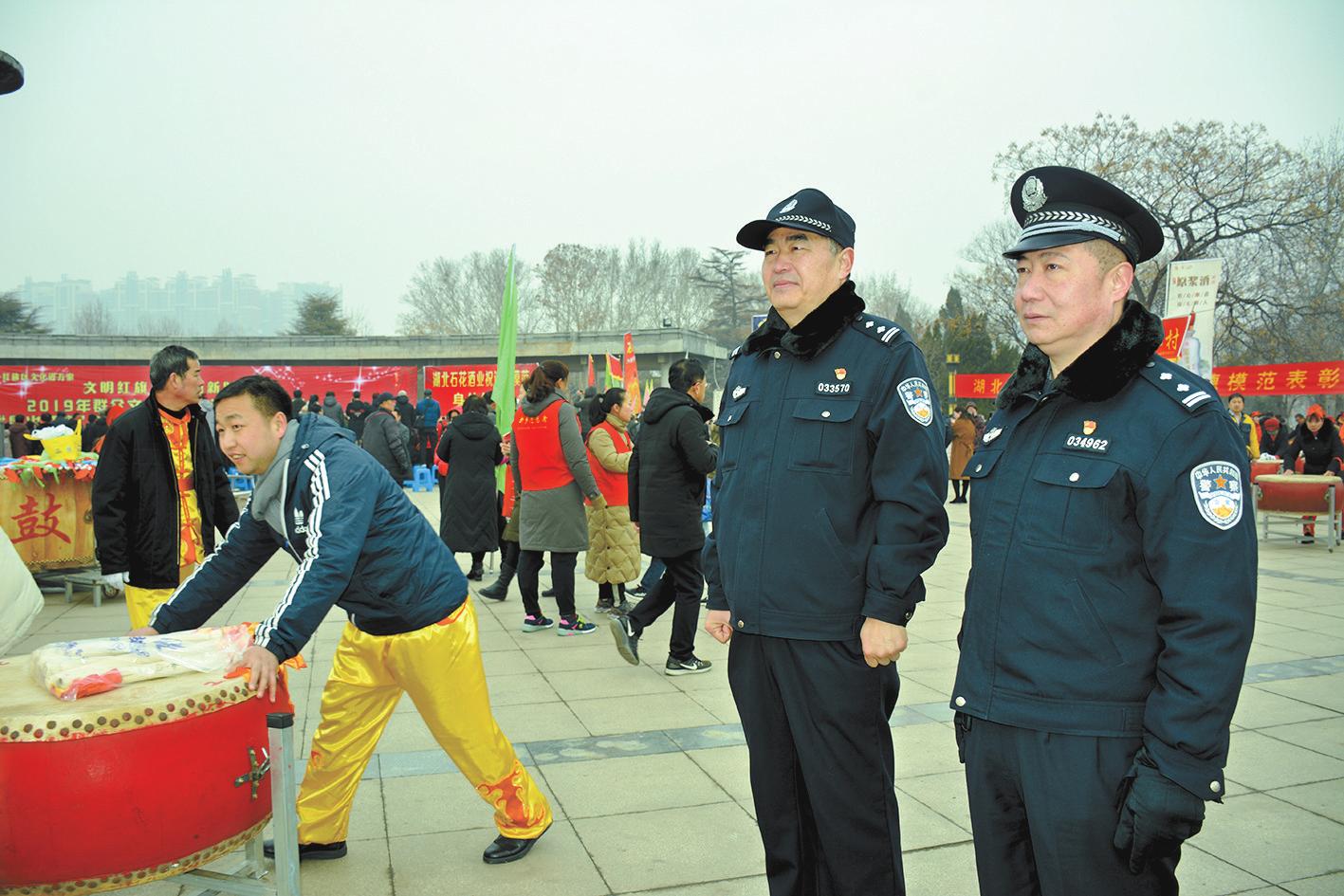 昨日,新乡市公安局东街分局民警在该市开展的“文化进万家”活动中维护现场秩序,保障群众安全。