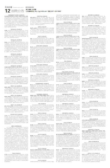 郑州高新技术产业开发区人民法院公告郑州印易轩贸易有限公司、翟风元、孙碧航、谢云风、王鹏:本院受理原告河南上谦实业有限公司诉你们追偿权纠纷案,现依法向你们公告送达起诉状副本、应诉通知书、诉讼权利义务风险告知书、举证通知书、告知审判庭组成人员通知书、开庭传票。自本公告发出之日起经过60日即视为送达。提出答辩状的期限为公告送达期满后的15日内,举证期限为公告期满后的15日内。并定于举证期满后的第3日上午9时(遇节假日顺延)在本院高新区中心法庭(地址为郑州高新区长椿路与药厂街交叉口东200米路北)公开开庭审理此案,逾期将依法缺席判决。 郑州市金水区人民法院公告张国胜:本院受理原告李平衡诉你民间借贷纠纷一案,因你下落不明,依照《中华人民共和国民事诉讼法》第九十二条之规定,现依法向你公告送达(2018)豫0105民初22111号民事判决书。自公告之日起60日内来本院领取民事判决书,逾期则视为送达。如不服本判决,可在公告期满15日内,向本院递交上诉状及副本,上诉于郑州市中级人民法院。逾期未上诉的,本判决即发生法律效力。 郑州市金水区人民法院公告 (2018)豫0105民初27430号薛城炎:本院受理的原告王鹏飞诉你民间借贷纠纷一案,现已审理终结。依法向你公告送达(2018)豫0105民初27430号民事判决书,被告薛城炎于本判决书生效之日起十日内偿还原告借款本金100000元及利息,利息自2017年12月15日起至实际偿还完毕之日止,按月利率2%计算;被告王松岭对上述债务承担连带清偿责任。自公告发出之日起经过六十日,即视为送达。如不服本判决,可在公告期满后十五日内向本院递交上诉状,上诉于河南省郑州市中级人民法院。逾期未上诉的,本判决即发生法律效力。 郑州市金水区人民法院公告 (2018)豫0105民初13896号高建伟:本院受理原告郑州隆鑫建筑设备租赁有限公司诉你租赁合同纠纷一案,已审理终结。现依法向你公告送达(2018)豫0105民初13896号民事判决书。限你自公告发出之日起60日内来本院领取判决书,逾期则视为送达,如不服本判决,可在公告期满后15日内向本院递交上诉状及副本10份,并交纳上诉案件受理费,上诉于河南省郑州市中级人民法院,逾期不上诉,本判决即发生法律效力。 郑州市金水区人民法院公告河南鑫亿通信技术有限公司、刘帅、李臣杰:本院在执行李爱君与河南鑫亿通信技术有限公司因工死亡赔偿纠纷一案中,申请人李爱君向本院提交书面追加刘帅、李臣杰为被执行人申请书。现依法向你们公告送达本院(2019)豫0105执异8号执行裁定书。自公告之日起60日内来本院执行局领取上述文书,逾期则视为送达。如不服本裁定,可在公告期满后15日内向本院提起执行异议之诉。 郑州市金水区人民法院公告金明:木院受理中信银行股份有限公司信用卡中心郑州分中心诉金明信用卡纠纷一案,现依法向你(方、们)公告送达起诉状副本、答辩通知书、举证通知书及开庭传票等。自公告之日起经过60日,即视为送达。提出答辩状和举证期限均为公告期满后的15日内,并定于举证期限满后第3日上午9时(遇法定节假日顺延)在本院开庭审理。逾期将依法缺席裁判。 郑州市二七区人民法院公告杨瑞光、庞刚见:本院受理原告秦锦龙诉你们民间借贷纠纷一案,现已审理终结。现依法向你公告送达(2019)豫0103民初1792号民事判决书。自公告之日起60日内来本院领取民事判决书,逾期则视为送达。如不服本判决,可在公告期满后15日内,向本院递交上诉状一式十二份,上诉于河南省郑州市中级人民法院。逾期本判决即发生法律效力。 郑州市二七区人民法院公告杨瑞光、郭金海:本院受理原告秦锦龙诉你们民间借贷纠纷一案,现已审理终结。现依法向你公告送达(2019)豫0103民初1793号民事判决书。自公告之日起60日内来本院领取民事判决书,逾期则视为送达。如不服本判决,可在公告期满后15日内,向本院递交上诉状一式十二份,上诉于河南省郑州市中级人民法院。逾期本判决即发生法律效力。 郑州市二七区人民法院公告侯辉、申沛沛、李世杰:本院受理原告秦锦龙诉你们民间借贷纠纷一案,现依法向你们公告送达(2018)豫0103民初6355号民事判决书。自发出本公告之日起60日内来本院(507办公室)领取民事判决书,逾期视为送达。如不服本判决,可在公告期满后15日内向本院递交上诉状及副本,上诉于河南省郑州市中级人民法院。逾期本判决即发生效力。 开封市禹王台区人民法院公告王东生:本院于2019年1月9日受理的原告邓子云诉你民间借贷纠纷一案,现依法向你公告送达起诉状副本、应诉通知书、权利义务告知书、风险告知书、开庭传票、举证通知书、合议庭组成成员通知书等诉讼文书。自公告发出之日起经过60日即视为送达。提出答辩状和举证期限分别为公告期满后的15日内和30日内,并定于举证期满后的第3日上午9时(遇法定节假日顺延),在本院审判庭公开开庭审理。逾期将依法缺席判决。 长葛市人民法院拍卖公告 关于王洁申请执行王飞民间借贷纠纷一案,执行过程中,本院依法组织双方当事人对被执行人王飞所有的位于长葛市车站街70号“天下城”的一楼四间商铺(登记为:0001009、0001010、0011011、0001012)进行了议价并在淘宝网司法拍卖网络平台上公开拍卖,现将有关事宜公告如下:拍卖标的物:王飞所有的位于长葛市车站街70号“天下城”