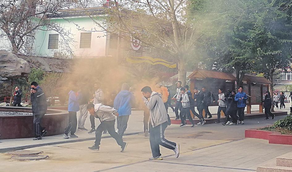 3月27日,郑州八中邀请消防指导员走进校园,模拟实战演练,组织全校师生学习发生火灾时如何逃生。