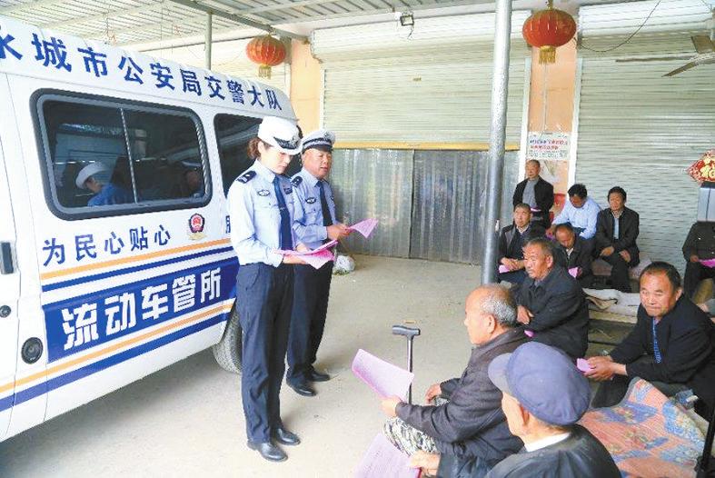 为进一步强化农村交通安全管理工作,永城市公安局交警大队每周五开展“畅行安全路,幸福奔小康”进村入户集中宣传活动。活动中,永城交警驾驶“流动车管所”服务车下乡开展上门送证服务,近距离、心贴心服务群众。河南法制报记者祁飞摄影报道