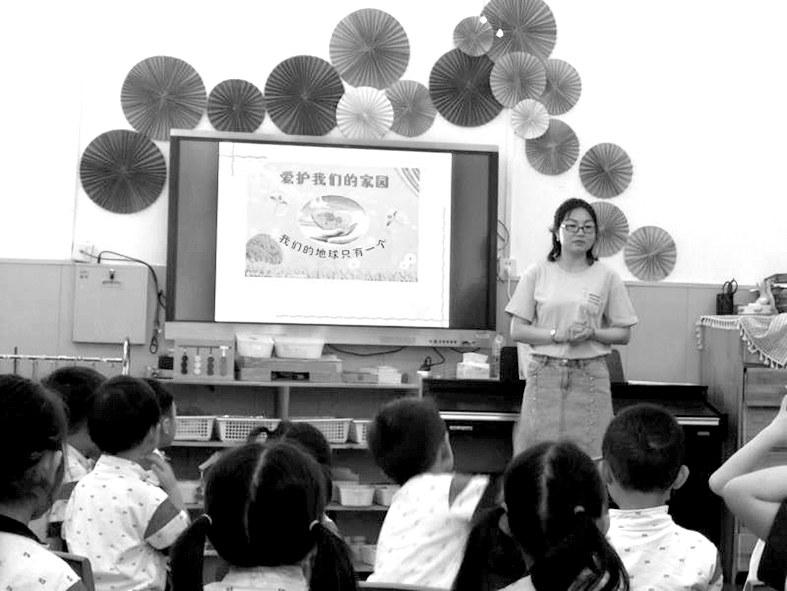 6月5日,郑州市二七区环保局党员志愿者来到二七区第一幼儿园,为小朋友们带去一堂生动的环保课。志愿者们放映了一些环境被破坏的视频,列举了一些日常生活中力所能及保护环境的做法,还给小朋友们普及了垃圾分类的知识。他们希望通过这样的教育活动,把保护环境的种子种进孩子们的心里。 邓东丰摄影报道