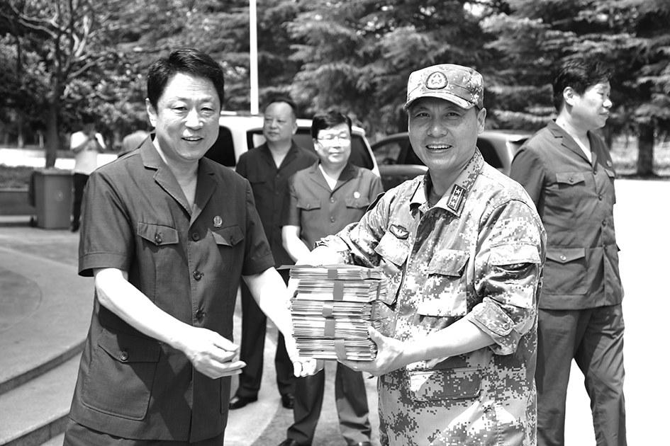 7月22日上午,平顶山市中级法院联合该市新华区法院开展了“送法进军营活动”,为某部官兵送去了法律宣传册和慰问品。