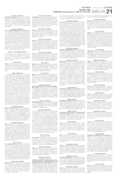 郑州市金水区人民法院公告河南宏安安防科技有限公司:本院受理的原告河南烟草投资管理有限公司诉你联营合同纠纷一案已审结。因你下落不明,依照《中华人民共和国民事诉讼法》第九十二条的规定,现依法向你公告送达(2019)豫0105民初14369号民事判决书。自公告之日起60日内来本院领取民事判决书,逾期则视为送达。如不服本判决,可在公告期满15日内,向本院提交上诉状及副本,上诉于郑州市中级人民法院,逾期判决即发生法律效力。 郑州市金水区人民法院公告刘加才、河南银发企业管理咨询有限公司、赵书成:陈伟与刘加才、河南银发企业管理咨询有限公司、赵书成民间借贷纠纷一案,本院作出(2017)豫0105民初20815号民事判决书已发生法律效力。因你们未履行生效法律文书确认的还款义务,权利人陈伟于2019年2月27日向本院申请执行,本院同日立案。现依法向你们公告送达(2019)豫0105执5140号执行通知书、财产报告令、限制消费令和执行裁定书,自公告之日起,经过60日即视为送达。限你们自公告期满后3日内,自动履行金钱给付义务。逾期不履行,本院依法将对你们限制高消费,并对赵书成名下位于金水区经七路50号院1号楼2单元27号(不动产权证号:9901821449)的房屋进行评估、拍卖。限你们于本公告期满之日15日内到本院联系办理有关本案评估、评估报告、拍卖等执行过程的有关事宜。逾期不到视为放弃相应权利,不影响评估拍卖的正常进行。由此产生一切经济损失和法律后果有你们承担。 郑州市二七区人民法院网络司法拍卖公告 河南省郑州市二七区人民法院将于2019年9月10日10时至2019年9月11日10时止(延时的除外)在河南省郑州市二七区人民法院淘宝网司法拍卖网络平台上,网址:http://sf.taobao.com/0371/11,户名:(郑州市二七区人民法院)依法对位于郑州市二七区京广南路13号院4号楼3单元33号房屋进行公开拍卖活动。 长垣县人民法院公告马百根:本院受理原告李玉哲诉被告马百根民间借贷纠纷一案,现依法向你公告送达本院(2019)豫0728民初325号民事判决书。自公告之日起60日内来本院领取,逾期视为送达。如不服本判决,可在公告期满后15日内向本院递交上诉状及副本,上诉于新乡市中级人民法院。逾期即发生法律效力。 长葛市人民法院拍卖公告 本院在执行申请执行人河南合众中小企业信用担保有限公司与毋顺利、毋有利等人追偿权纠纷一案,本院依法对被执行人毋顺利名下位于焦作市解放区解放中路世纪新区14号楼1单元5号(权证号:0530104180)和被执行人毋有利位于焦作市解放区青年路新苑小区161号楼4单元6号(权证号:0530101447)二处房产进行了评估,现在淘宝网司法拍卖平台进行拍卖。现将有关事宜公告如下:拍卖标的物:毋顺利名下位于焦作市解放区解放中路世纪新区14号楼1单元5号(权证号:0530104180)、毋有利名下所有的位于焦作市解放区青年路新苑小区161号楼4单元6号(权证号:0530101447)。拍卖标的物的所有权人及拍卖价格:被执行人毋顺利名下位于焦作市解放区解放中路世纪新区14号楼1单元5号(权证号:0530104180)评估价为682400元,经合议庭合议,将以评估价682400元作为起拍价,保证金为68000元,增加幅度每次为6800元。被执行人毋有利位于焦作市解放区青年路新苑小区161号楼4单元6号(权证号:0530101447)二处房产。评估价为590400元,经合议庭合议,将以评估价590400元作为起拍价,保证金为60000元,增加幅度每次为5900元。与本案拍卖财产有关的担保物权人或着其他优先权人应于拍卖日前经法院确认后到淘宝网司法拍卖平台报名参与竞买,届时未报名的,视为放弃优先购买权。其他参与竞买的单位和个人需要了解上述拍卖物的情况的,请直接登录淘宝网司法拍卖平台了解有关拍卖信息。 开封市金明区人民法院公告周曙光(41022519730312493X):原告乔家刚诉你民间借贷纠纷一案,现已审结。依照《中华人民共和国民事诉讼法》第九十二条的规定,向你公告送达本院(2019)豫2011民初字第334号民事判决书,判决内容为:被告周曙光于本判决生效之日起3日内给付原告乔家刚烟酒款12300元。案件受理费108元、公告费300元,由被告周曙光负担。请你于本公告发出之日起60日内来本院民事一庭领取民事判决书,逾期则视为送达。如不服本判决,可在公告期满后15日内向本院递交上诉状,并按对方当事人的人数提出副本,上诉于开封市中级人民法院。逾期本判决即发生法律效力。 新乡市牧野区人民法院公告马琳:本院受理的申请执行人何东燕与你买卖合同一案,现已进入司法评估程序。申请人何东燕申请对马琳和吕海霞共有的位于新乡市学院街88号畅想剑桥程城2号楼1单元11903室的房产予以评估、拍卖。现依法向你送达选择评估机构通知书,自发出公告之日起,经过60日视为送达。请你携带有效证件自公告期满后第5日(遇法定节假日顺延)9时到本院509室选定评估机构,逾期不至,视为自动放弃权利,将按有关程序进行。同时告知你在选定评估机构后3日内来我院确定现场勘察事宜,逾期本院将组织现场勘察,届时评估机构将作出初稿,你应在作出初稿后3日内领取,逾期视为送达。如对初稿有异议在领取后五日内以书面形式提出,否则视为对初稿认可,届时评估机构将作出正式报告,正式报告出具3日后视为送达。 延津县人民法院公告河南一饮相思酒业有限公司:本院受理的河南省大成建设工程有限公司诉河南一