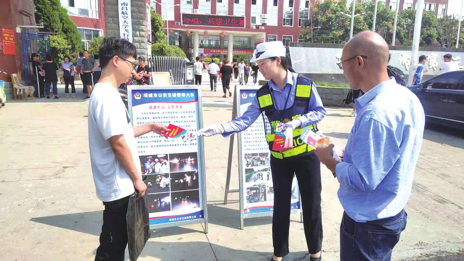 8月22日,项城市公安局交警大队民警走进项城市第三高级中学,宣传交通安全知识,为广大师生上好交通安全秋季开学第一课。
