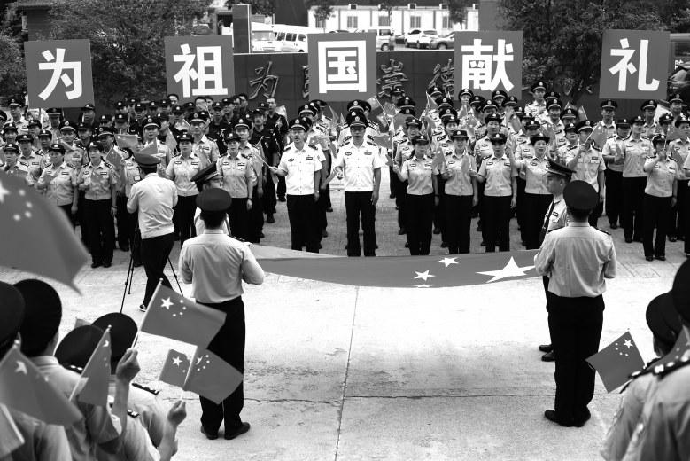 近日,省郑州监狱300余名干警职工齐聚该监狱办公楼前进行红歌传唱会演活动,全场人员手持国旗,以一曲曲激动人心的红色歌曲迎接新中国成立70周年,祝福祖国繁荣昌盛。河南法制报记者董景娅通讯员张聪聪摄影报道