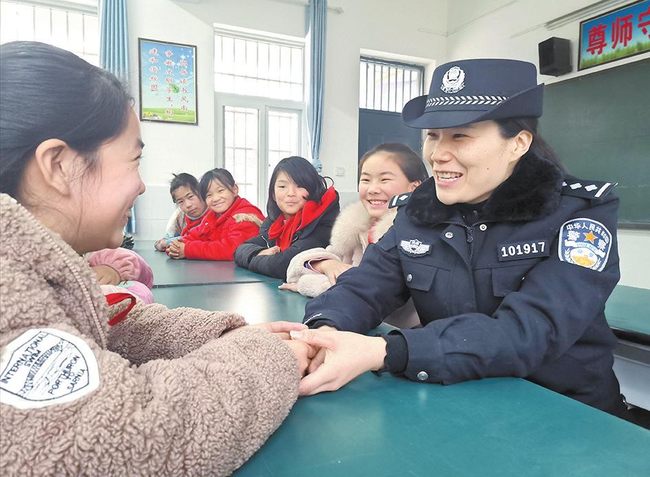 ▲12月23日,郑州市公安局经济技术开发区分局祥云派出所组织民警走进辖区中小学校,开展送法进校园活动,教授同学们如何应对校园欺凌,保护自身安全。 河南法制报记者王富晓摄影报道