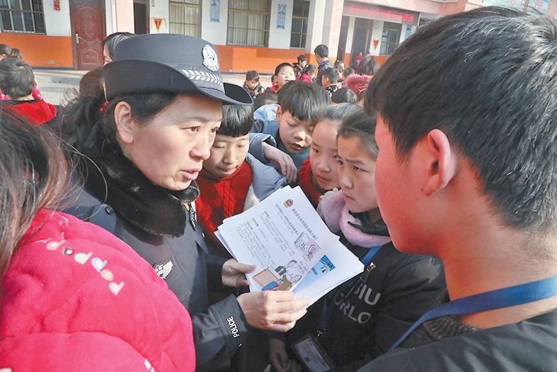 近日,鹿邑县公安局法制大队组织民警走进该县杨湖口镇中心学校,开展“预防校园欺凌和暴力进校园”法治宣传活动。河南法制报记者尹志丹