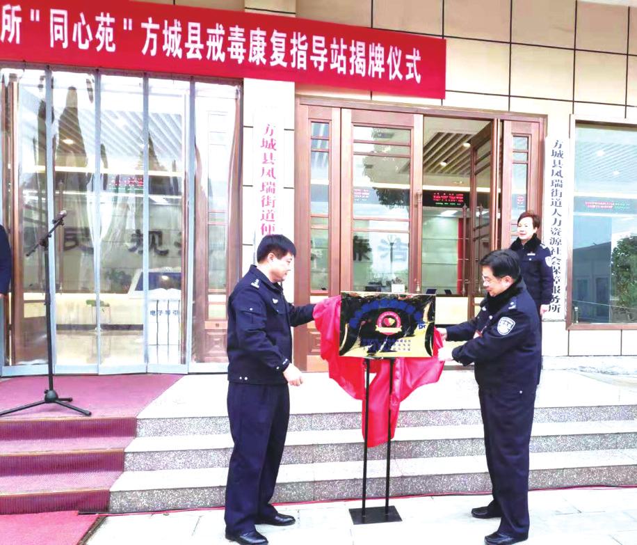 12月18日,省第一强制隔离戒毒所携手方城县公安局,在该县凤瑞街道办事处举行“同心苑”方城县戒毒康复指导站揭牌仪式。该所政委涂世强说,做好衔接帮扶、后续照管工作,对帮助戒毒人员走好康复回归“最后一公里”意义重大。 毕冠领摄影报道