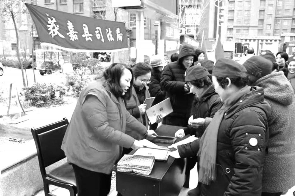 12月20日,获嘉县司法局青年普法志愿者到城关镇岳庄社区开展文化、科技、卫生“三下乡”活动,通过发放宣传资料,为社区居民送上“法治大餐”。 河南法制报记者荆锐摄影报道