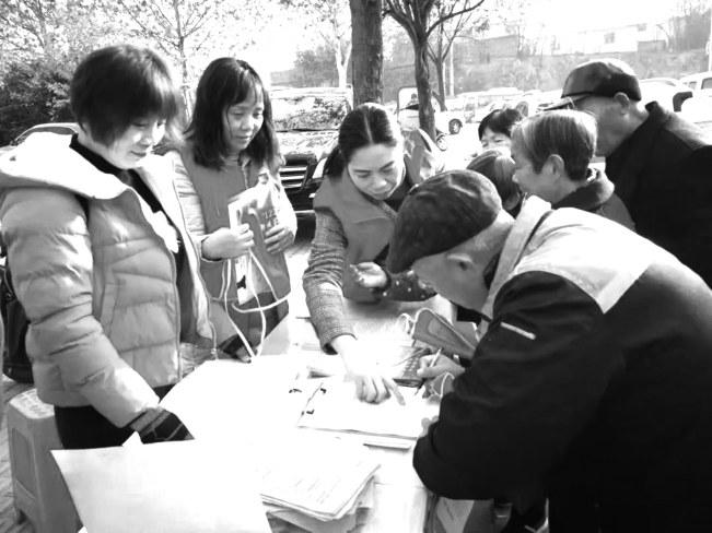 近日,商城县委政法委、县法学会和该县鲇鱼山办事处青年普法志愿者开展法治文化进社区活动。图为志愿者向过往群众解读宪法相关知识和扫黑除恶相关政策。 河南法制报记者荆锐摄影报道