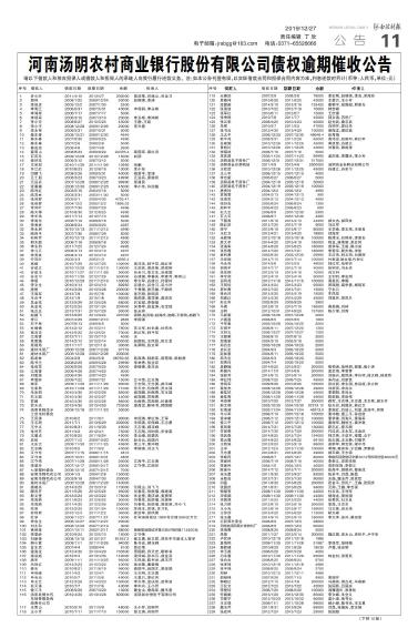 河南汤阴农村商业银行股份有限公司债权逾期催收公告