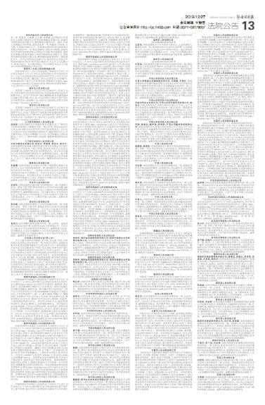 郑州市金水区人民法院公告李一本、胡海英、石峪箐、石玉卿、孙翠梅:在本院执行申请执行人徐真与被执行人郑州市峪青置业有限公司、河南笑开颜投资担保有限公司、曹俊峰民间借贷纠纷一案中,申请人徐真提交书面申请,请求追加李一本、胡海英、石峪箐、石玉卿、孙翠梅为被执行人。本院裁定追加郑州市峪青置业有限公司股东李一本、股东胡海英、原股东石峪箐,追加河南笑开颜投资担保有限公司股东石玉卿、股东胡海英、原股东孙翠梅为徐真申请执行郑州市峪青置业有限公司、河南笑开颜投资担保有限公司、曹俊峰民间借贷纠纷一案的被执行人。因无法有效送达法律文书,现向你们公告送达本院(2019)豫0105执异859号执行裁定书,自公告之日起满60日,即视为送达。如不服本裁定,可以自裁定书送达之日起15日内向本院提起执行异议之诉。 郑州市二七区人民法院拍卖公告 河南省郑州市二七区人民法院将于2020年2月29日10时起至2020年3月1日10时止(延时的除外)在河南省郑州市二七区人民法院淘宝网司法拍卖网络平台上对位于许昌市水岸新城小区第一幢东起二单元23层东户(合同编号:201403461)房产进行公开拍卖活动,详情请关注网址:http://sf.taobao.com/0371/11?spm=a213w.3065169.0.0.MO3r4A,户名:郑州市二七区人民法院。 登封市人民法院公告 本院将于2020年1月28日10时至2020年1月29日10时止(延时除外)在河南省登封市人民法院淘宝网司法拍卖网络平台上,对位于郑州市中原区桐柏路98号帝湖花园A区帝湖王府6号楼1单元14-15层东侧V号的房产进行首次公开拍卖活动。(法院账户名:登封市人民法院,法院主页网址:https://sf.taobao.com/0371)。 登封市人民法院公告 本院将于2020年1月28日10时至2020年1月29日10时止(延时除外)在河南省登封市人民法院淘宝网司法拍卖网络平台上,对位于登封市中岳街道办事处福佑路东玉带路北东城花园小区6号楼3单元6层606的房产进行首次公开拍卖活动。(法院账户名:登封市人民法院,法院主页网址:https://sf.taobao.com/0371)。 三门峡市湖滨区人民法院公告胡俊泽:本院受理原告中原银行股份有限公司三门峡分行与你和张静债权人撤销权纠纷一案已审结,现依法向你们公告达(2019)豫1202民初字第2754号民事判决书。自公告之日起60日内来本院领取民事判决书,逾期则视为送达,如不服本判决,可在公告期满后15日内,向本院通交上诉状及副本,上诉于三门峡市中级人民法院,逾期本判决即发生法律效力。 三门峡市湖滨区人民法院公告河南方泰实业有限公司、田克全、贾素桃、贾向东、秦玉平:本院受理原告陈爱菊与被告河南方泰实业有限公司与你们债权转让合同纠纷一案已审结,现依法向你们公告送达(2019)豫1202民初字第3137号民事判决书。自公告之日起60日内来本院领取民事判决书,逾期则视为送达。如不服本判决,可在公告期满后15日内,向本院递交上诉状及副本,上诉于三门峡市中级人民法院。逾期本判决即发生法律效力。 鹿邑县人民法院公告朱春蕾:本院受理原告中国太平洋财产保险股份有限公司郑州中心支公司诉你保险纠纷一案,现依照《中华人民共和国民事诉讼法》第九十二条规定,向你公告送达(2019)豫1628民初5740号民事判决书。自本公告发出之日起经过60日即视为送达。如不服本判决,可在判决书送达之日起十五日内向本院递交上诉状,并按对方当事人和代表人数提出副本上诉于周口市中级人民法院。 灵宝市人民法院公告张建花:本院受理原告薛改霞与你离婚纠纷一案,本案现已审结。因你下落不明,现依法向你公告送达(2019)豫1282民初3779号民事判决书。自公告之日起60日内来本院领取民事判决书,逾期则视为送达。如不服本判决,可在判决书送达之日起15日内,向本院递交上诉状,并按对方当事人的人数提出副本,上诉于三门峡市中级人民法院。逾期本判决即发生法律效力。 灵宝市人民法院公告张永斌:本院受理原告董景卫与你民间借贷纠纷一案,本案现已审结。因你下落不明,现依法向你公告送达(2019)豫1282民初3982号民事判决书。自公告之日起60日内来本院领取民事判决书,逾期则视为送达。如不服本判决,可在判决书送达之日起15日内,向本院递交上诉状,并按对方当事人的人数提出副本,上诉于三门峡市中级人民法院。逾期本判决即发生法律效力。 鹿邑县人民法院公告鲁其川:原告李鹏与你民间借贷纠纷一案,已审结。依法向你公告送达(2019)豫1628民初4376号民事判决书。自公告之日起60日内来本院领取民事判决书,逾期则视为送达。如不服判决,可自公告期满后十五日内向本院递交上诉状,并按对方当事人的人数提出副本,上诉于周口市中级人民法院。逾期将发生法律效力。 中牟县人民法院公告(第二次) 关于王振申请执行闫晓斌、李文堂、张文迪、刘钧、河南四鸿实业有限公司合同纠纷一案,在执行过程中,本院依法委托有关评估机构对被执行人李文堂名下位于河南省郑州市金水区文化北路36号9号院3单元10层1004号房产进行评估。本院将在淘宝网司法拍卖平台拍卖上述财产。现将有关拍卖事宜公告如下:拍卖标的物:河南省郑州市金水区文化北路36号9号院3单元10层1004号。拍卖标的物的所有权人:李文堂、殷利娜。拍卖机构名称:淘宝网司法拍卖平台。与本案拍卖财产有关的担保物权人、优先权人或者其他优先权人于在拍卖日之前五日向本院提交相