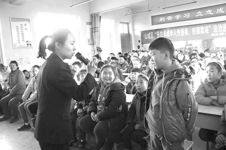 ▲近日,鹤壁市山城区检察院“法治巡讲进校园”活动走进辖区石林镇寺望台小学。