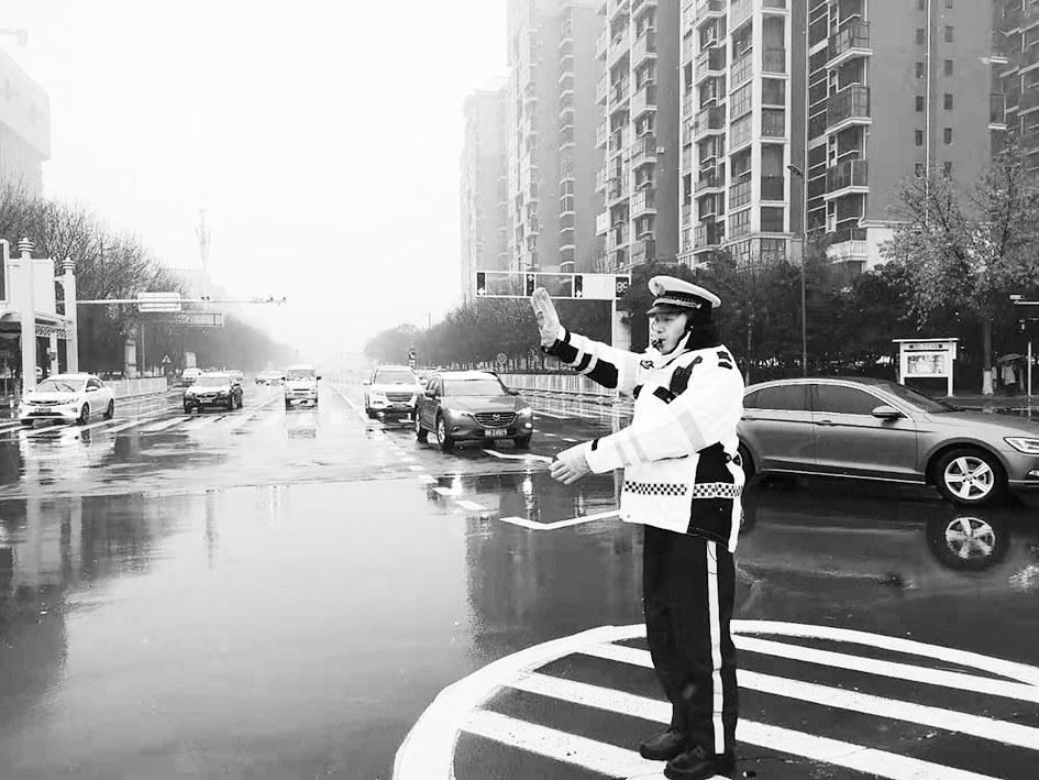 ▲1月7日晨,许昌市公安局交通管理支队第一交通执勤大队民警全员上岗,在辖区主要路口疏导交通、服务群众。