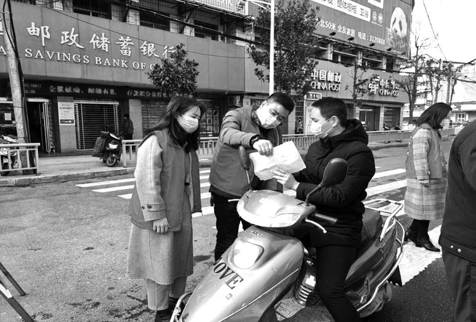 出入证明检查排查工作,积极开展疫情防控志愿服务活动。图为志愿者向过往群众宣传卫生防疫等健康知识。 河南法制报记者荆锐摄影报道
