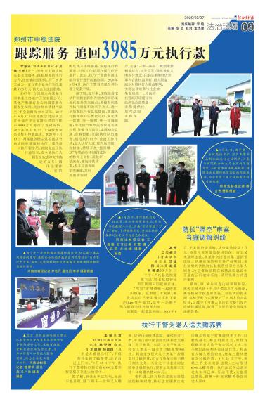 郑州市中级法院跟踪服务追回3985万元执行款