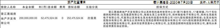 河南资产管理有限公司拟对拥有的晋江晟瑞房地产开发有限公司债权进行公开处置,截至基准日2020年7月20日,标的债权涉及未偿本金人民币200,000,000.00元,未偿利(罚)息52,475,524.56元,债权总额252,475,524.56元。具体情况详见资产处置清单。 特别提示: 1、主债务人和担保人应支付给河南资产管理有限公司的利息、罚息、违约金等相关费用按照合同约定及相关法律法规的规定计算,不良债权下的权利义务一并转让。 2、如公告清单中债务人、担保人名称与借据、借款合同、担保合同中名称等相关信息不符的情况下,以借据、借款合同、担保合同中债务人、担保人加盖的公章上名称为准。 3、若债务人、担保人因各种原因更名、改制、歇业、吊销营业执照或丧失民事主体资格的,请相关承债主体及/或主管部门代为履行义务或履行清算职责。 4、本次公告中的资产信息仅供投资者参考,最终以我公司接收的档案资料、法院判决(如有)、执行证书(如有)及实际发生计息为准。就本公告中债权资产项下各笔债权(及部分物权)及其附属担保权益的合法有效性及时效,以及债务人、担保人现状等,请投资者自行调查及判断,我公司对此不作任何保证。 受让方须为在中国境内注册并合法存续的法人或者其他组织或具有完全民事行为能力的自然人,并应具备注册资本、财务状况良好等条件;不得为:国家公务员、金融监管机构工作人员、政法干警、资产管理公司工作人员、国有企业债务人管理人员以及参与资产处置工作的律师、会计师、评估师等中介机构关联人或者上述人员及其关联人参与的非金融机构法人;以及与上述人员有亲属关系或其他利害关系的人员。 公告有效期限自本公告发布之日起20个工作日有效。如有异议或详情咨询,可在公告有效期内来电咨询,如发现阻挠咨询现象,可向我公司举报。 咨询电话:0371-56826605联系人:袁女士 举报电话:0371-56826667监督人:卢先生 河南资产管理有限公司 2020年7月27日 |