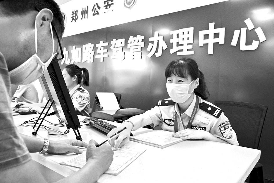 昨日,郑州市公安局郑东分局九如路车驾管办理中心内,辖区群众一大早就赶来办理业务。据悉,该中心是郑州市首家在派出所内专职开展交管业务的服务中心。河南法制报记者宁晓波通讯员张斌摄影报道