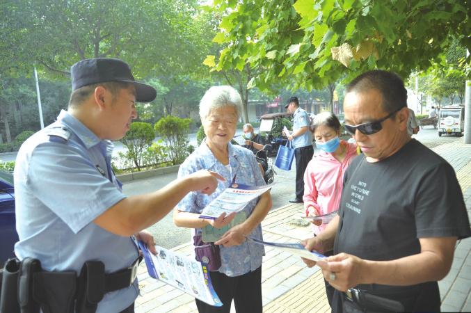考虑到现在学生接触手机、网络较多,为全面增强学生家长防范诈骗犯罪意识,9月15日,中牟县公安局特巡警大队组织民警到学校门口开展防诈骗宣传活动,向家长发放宣传页。