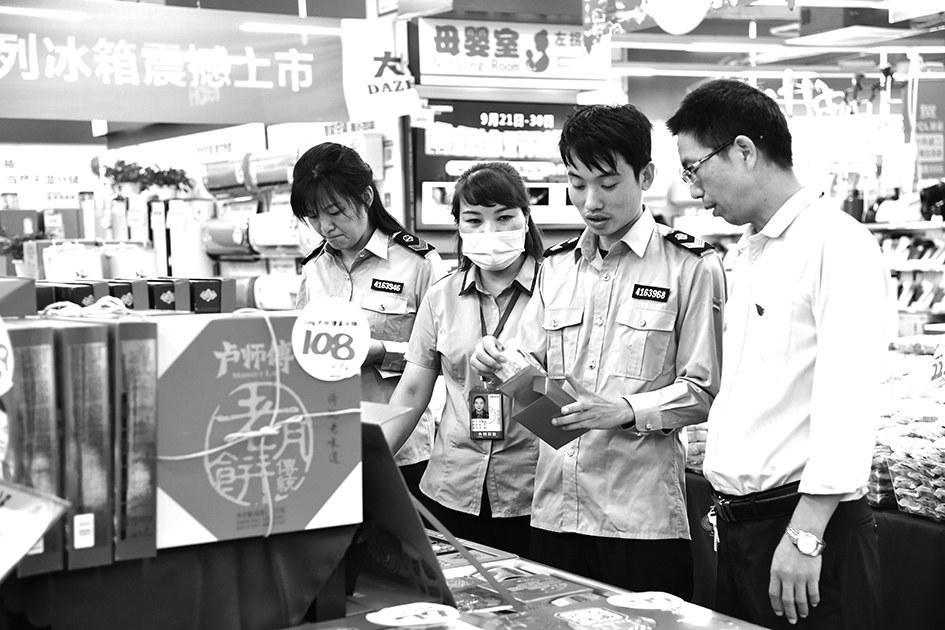 定精神落地生根。图为近日,该县派驻县住建局纪检监察组深入大型超市、小商品城等,对食品销售情况进行督导检查。